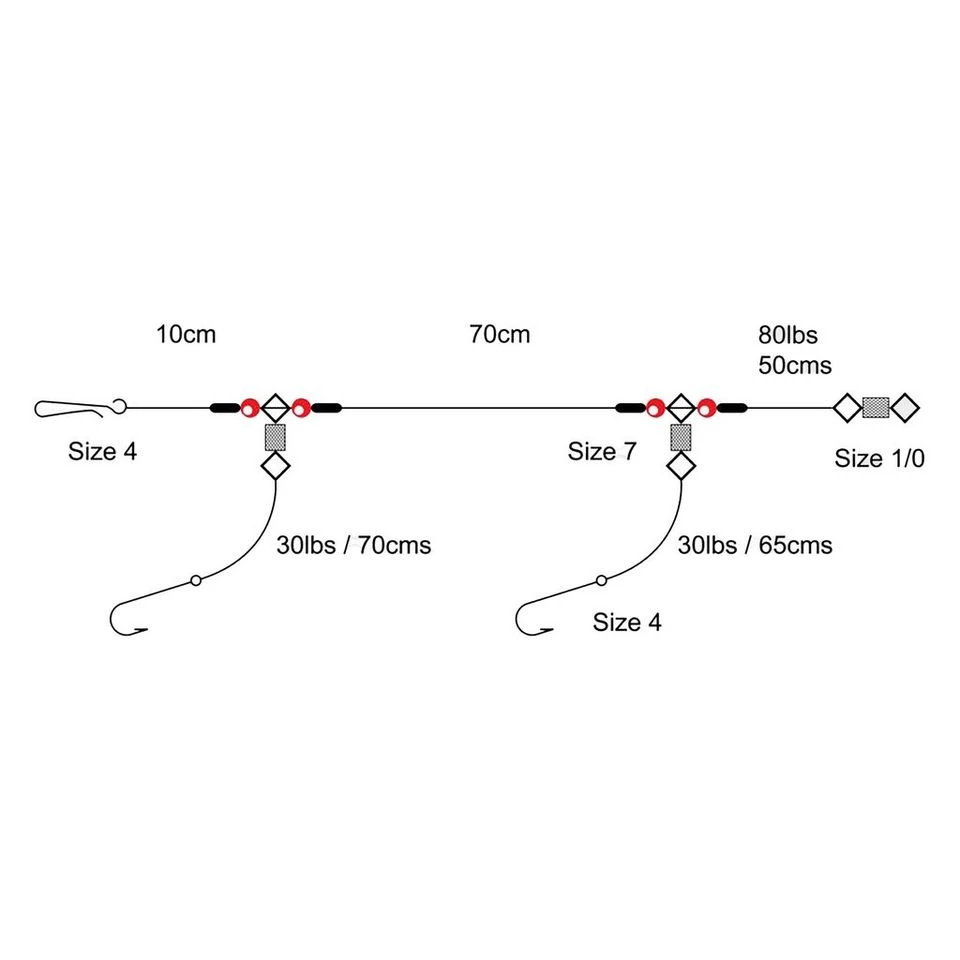 A variation of the standard two-hook rig, designed for anglers looking to target a range of bottom dwellers and bottom feeding fish.