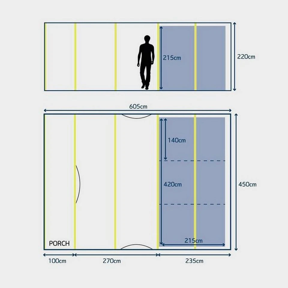 - Dimensions: 220cm (H) x 450cm (W) x 605cm (L)