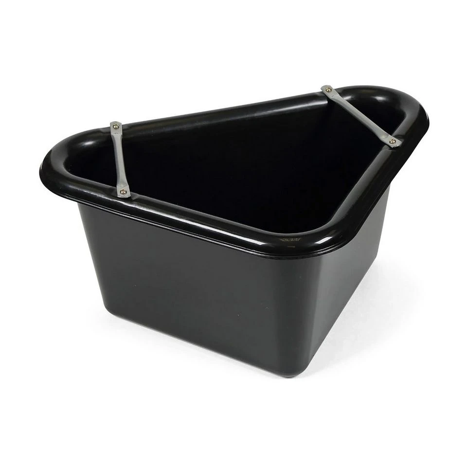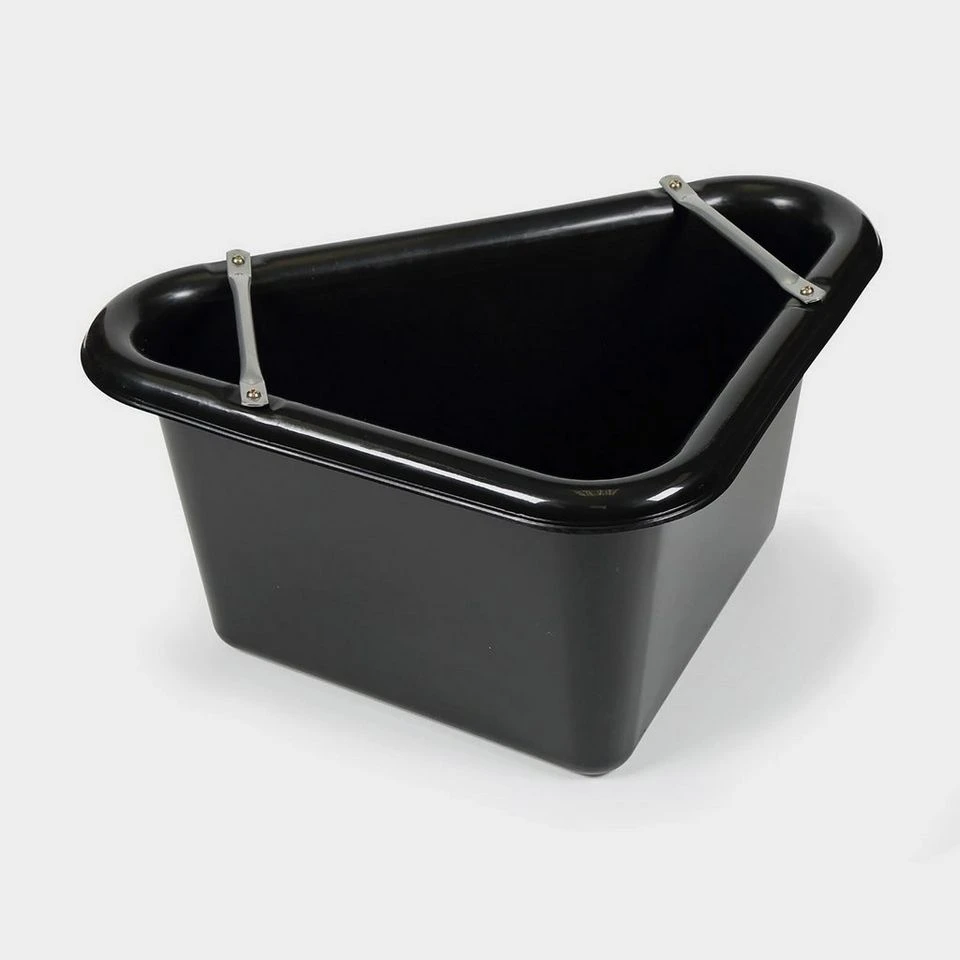 Ideal for large feeds, and safe to leave in the stable, corner mangers are one of the most popular stable feeding buckets. Two short anti-waste bars also act as handy carrying handles. Sturdy plastic corner manger with anti-waste bars.