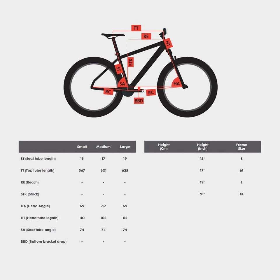 - Sizes: M: 13”, 15” – (27.5”) / 17”, 19”, 21” – (29”) S/O: 12”, 14” – (27.5”)
