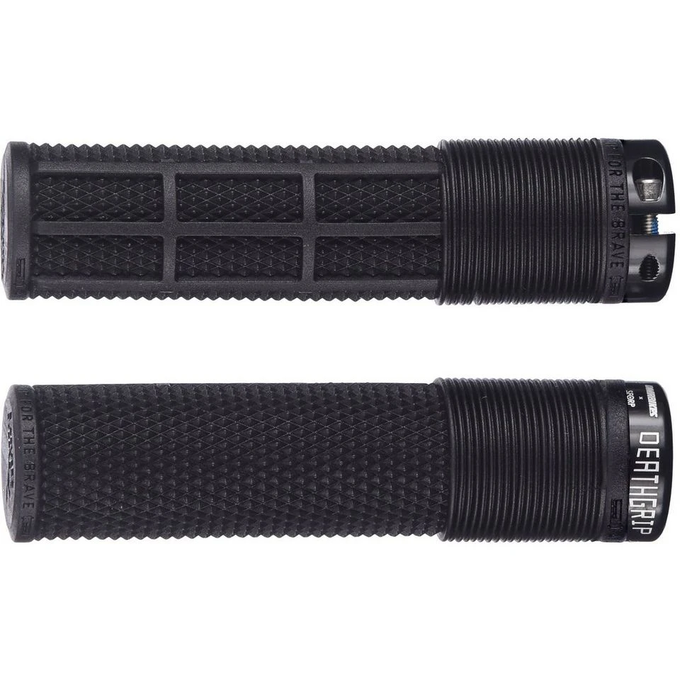 The DMR Brendog Death Grip is a mountain bike grip that started with an internally tapered single-lock core grip and was wrapped with Brendan’s design using a super-soft Kraton compound. It features waddle and knurl for grip and mushroom for comfort.