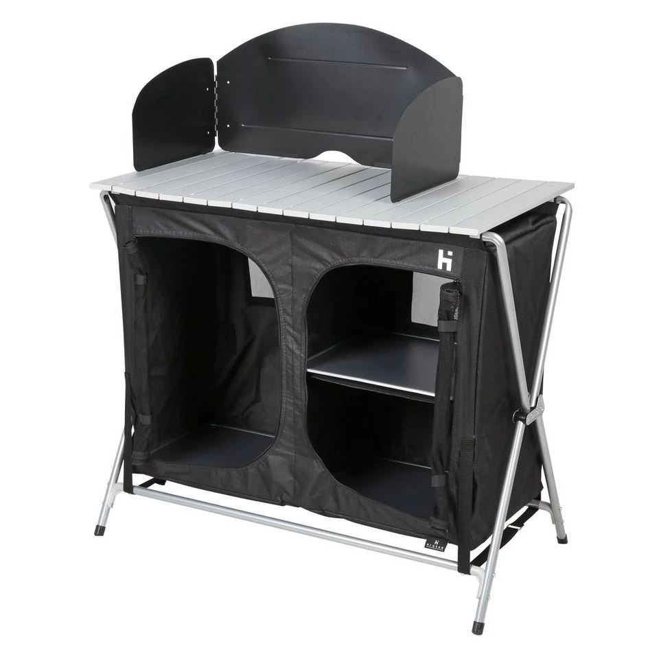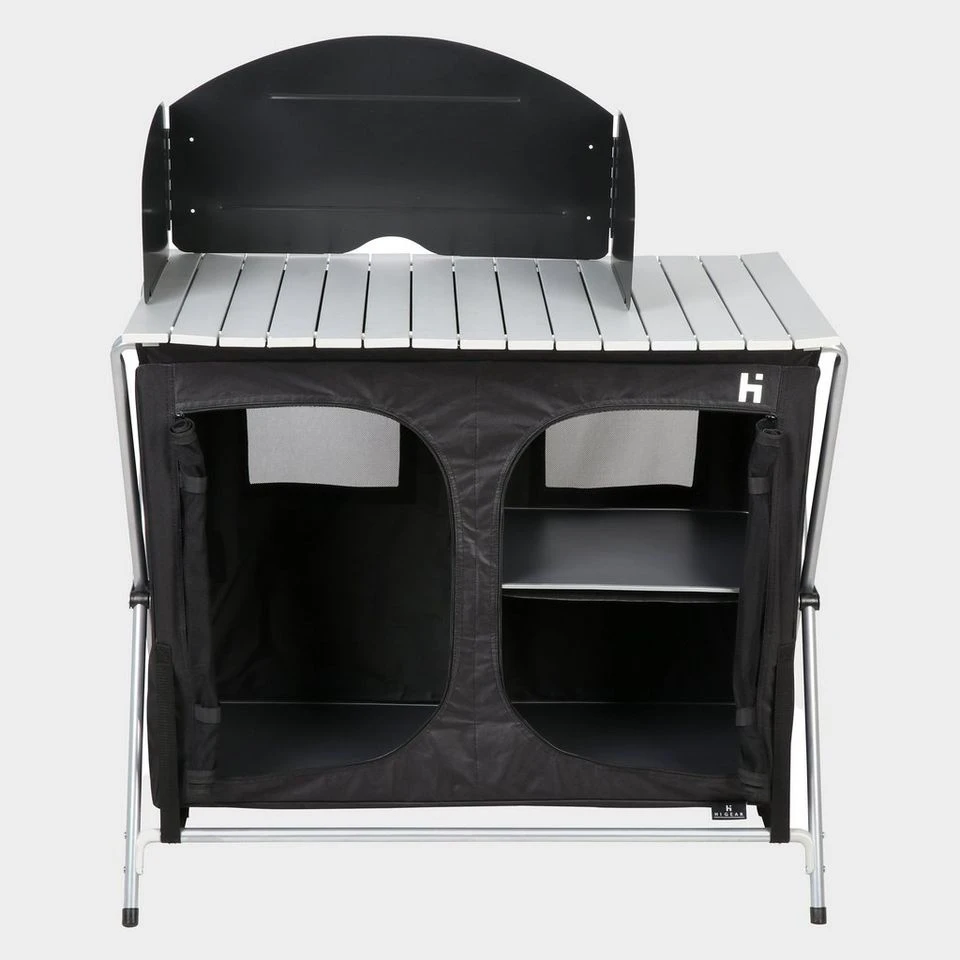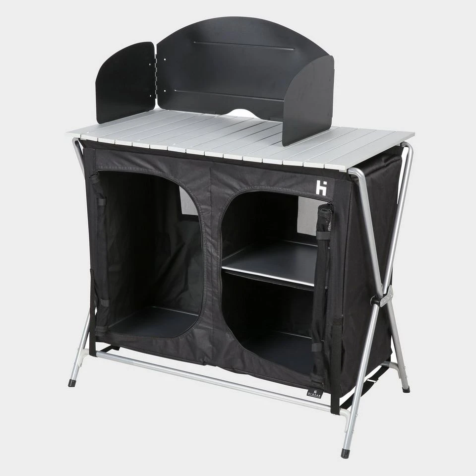 A practical pantry and work surface giving you a superb campsite cooking environment.