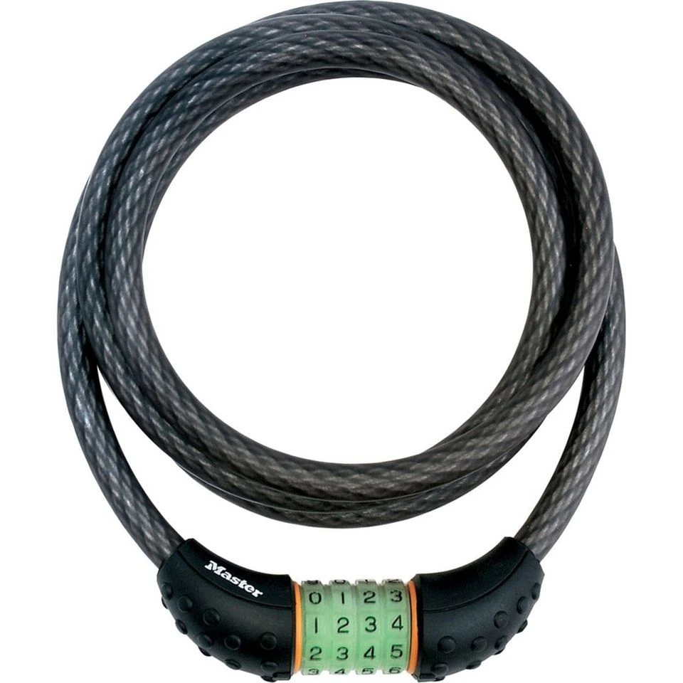 A very sturdy steel cable with keyless, glow-in-the-dark convenience.