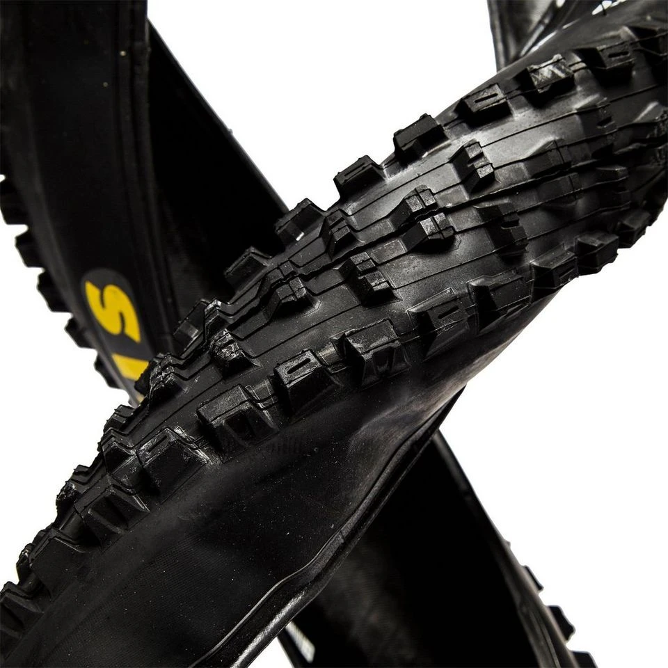 The Maxxis High Roller II’s open and aggressive tread design gives it excellent soil penetration and mud clearing ability, and the square profile provides a solid, consistent feel across the knobs.