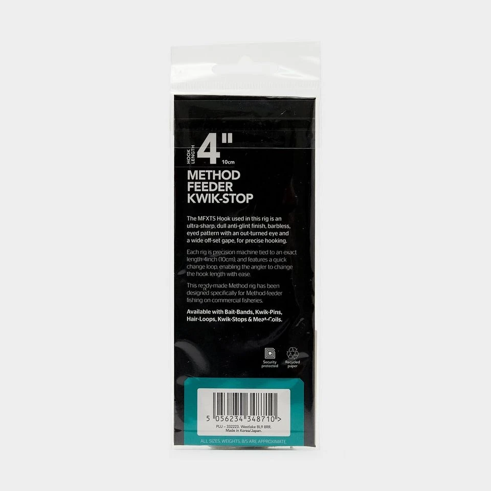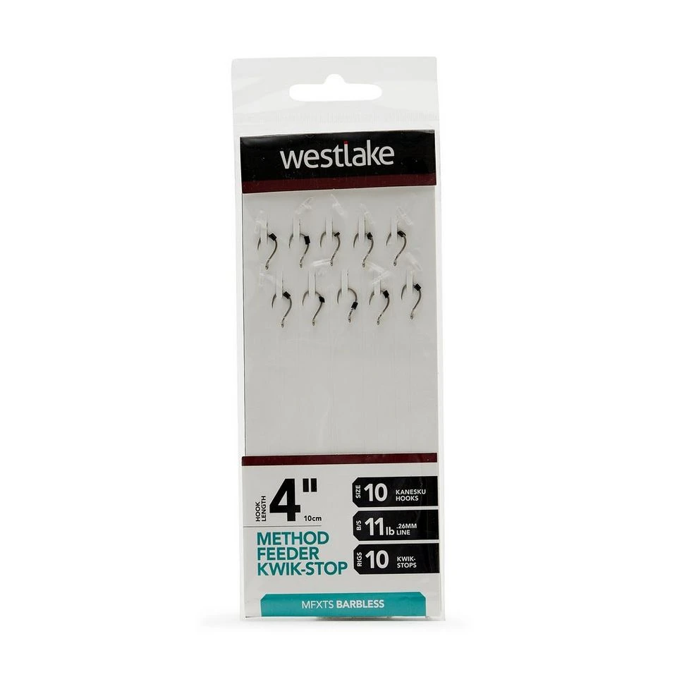 Machine tied to an exact length; the Westlake Method Feeder Kwik-Stop Rig features a quick-change loop which allows the angler to change the hook with ease. Designed for method feeder fishing on commercial fisheries, the Method Feeder Bait-Band Rig is a must have for your days by the lake.