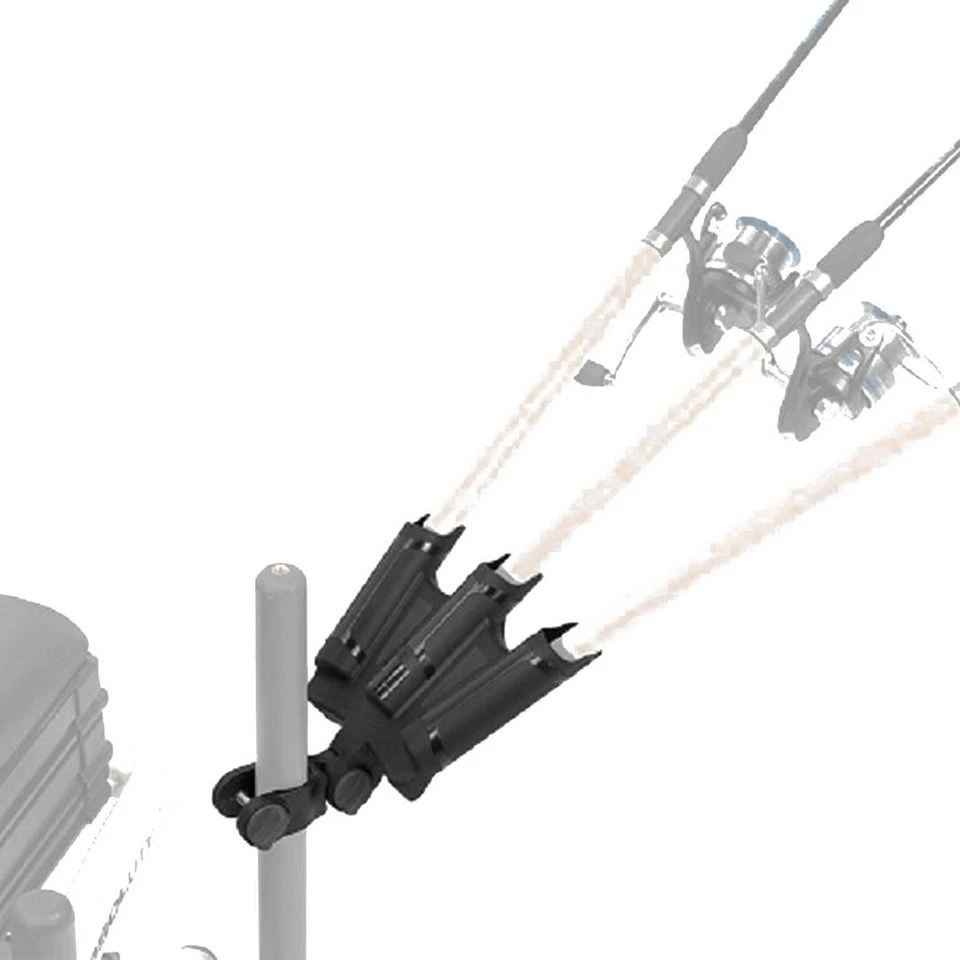 The OffBox 36 Triple Rod Support is ideal for storing up to 3 rods whilst fishing.We’ve spent a long time testing and devloping the Support, reinforcing the key stress areas an aiming to create the strongest and most user friendly Rod Support we possibly could.Preston ace Tommy Pickering had a key role in the development;The Triple Rod Support is compact in design which doesn’t take up too much room, it’s the perfect size to store in our Accessory bags.The unique OffBox 36 angled teeth versatility gives you loads of different angles to position the Support.So, no matter what the nearside bank is like you can support your rods easily and securely.It’s not just for rods though, it can house pole top kits perfectly too. It’s an incredibly versatile and multi-functional Support.You can attach it to the leg of your seatbox or platform and adjust the angle, leaving spare rods close to hand at all times. Inserts Supplied; 23mm OffBox, 25mm Round, 30mm Round