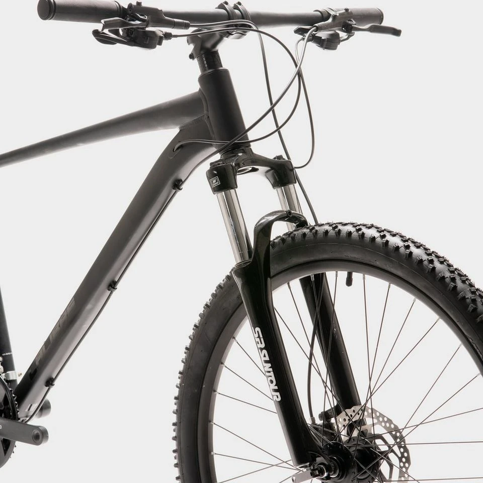 Equipped with 27.5” tyres and modern geometry for durable performance, the Calibre Saw mountain bike makes light work of the toughest trails.
