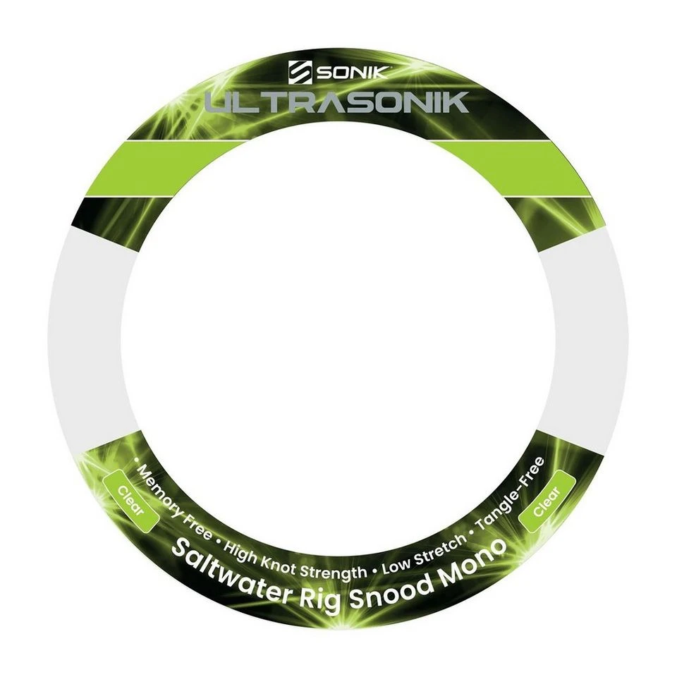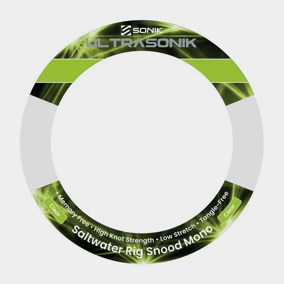 The Ultrasonik Snood Mono has been designed to be the perfect companion to the Ultrasonik Saltwater Mono. With no memory, a tangle-free appearance and strong knot strength (even when wet), it stays straight after stretching, perfect for both beach and boat anglers.