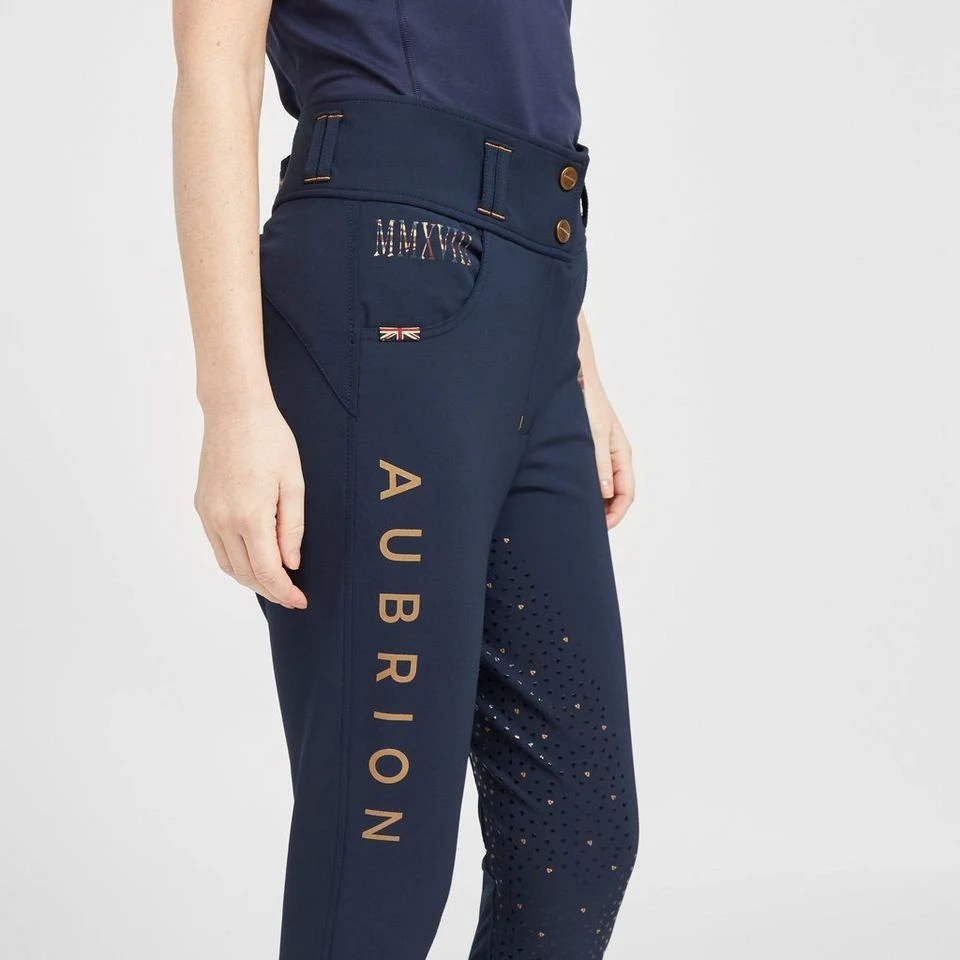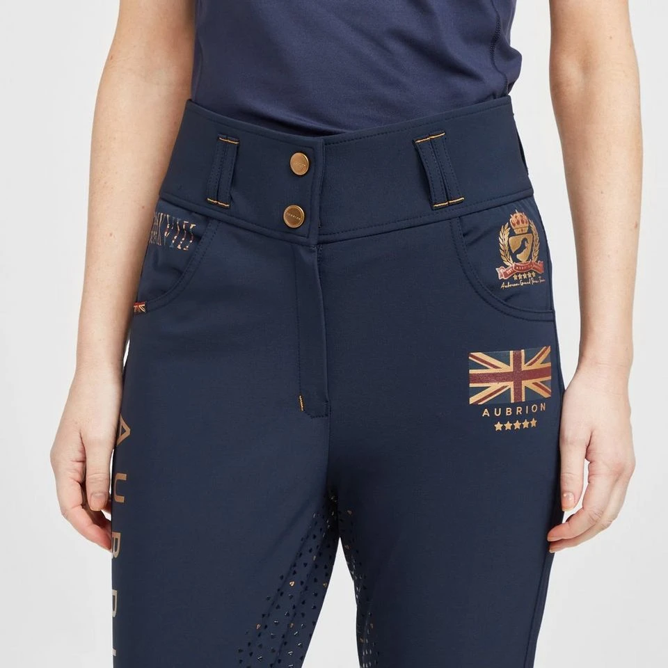 The Women’s Team Breeches offer full stability while you ride thanks to the silicone seat and leg grips. Featuring a high waist, fitted cuffs, double button fastenings and belt loops, these breeches will go perfectly with any professional riding outfit. Finished with the Aubrion Team logo and available in a range of colours to suit your style.