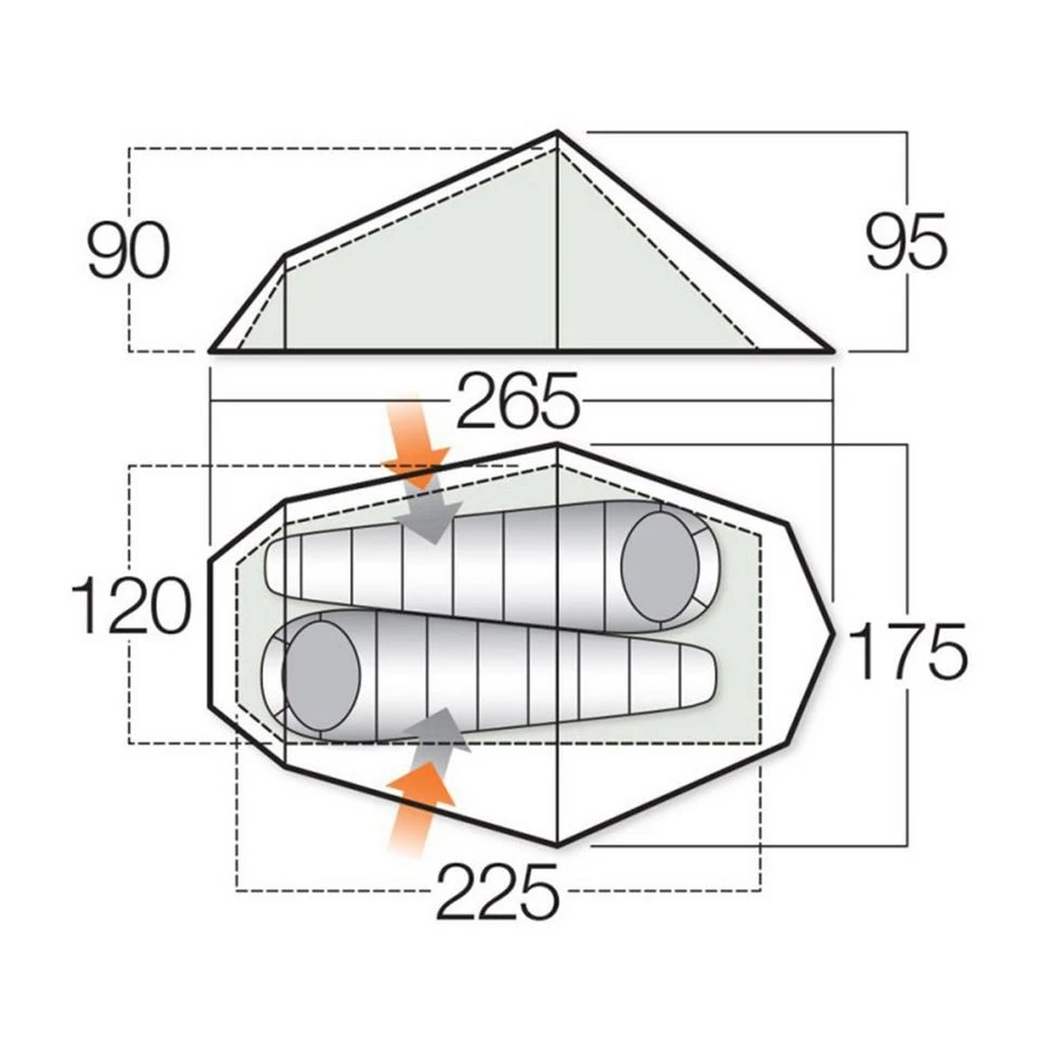 - Twin flysheet doors – allows easier access for two or more occupants, and/or additional storage